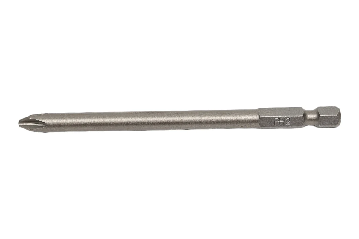 Бита крестовая удлинённая серии Industrial PH 2X100 применяется совместно с шуруповертами и с ручными инструментами для работ по монтажу/демонтажу крепежа, имеющего шлиц PН2. Бита изготовлены из высокопрочной хромованадиевой стали, что обеспечивает длительный срок эксплуатации. Хвостовик E 1/4".